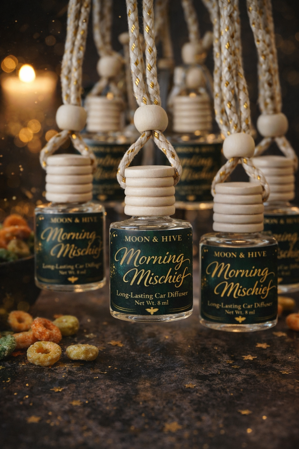 Our Moon & Hive Hanging Car Diffusers are more than a typical car air freshener — they’re a slow-release, long lasting car air freshener designed to transform your everyday drive into something sensual, elevated, and unforgettable.