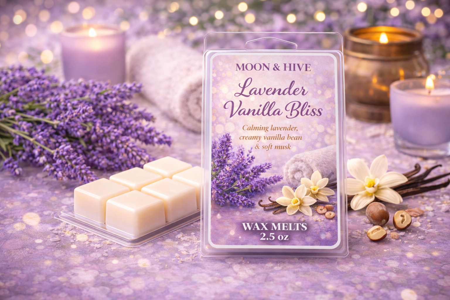 Snap off a cube, melt, and let your space fill with calming lavender, cozy vanilla, and pure bliss.